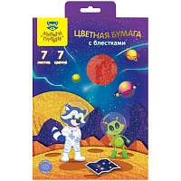 Цветная бумага А5, Мульти-пульти "Приключения Енота", 7л., 7цв., с блестками, в папке ЦБ7А5б_16846