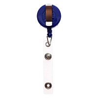 Карабин для бейджа, с держателем-рулеткой, на кнопке, синий
