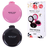 Расческа для волос массажная "2 в 1", 6,5 см с зеркалом, компактная цвета АССОРТИ, MONTE VITA (МОНТЕ ВИТА), 457425