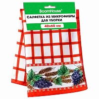 Салфетка из МИКРОФИБРЫ универсальная, 40х60 см, красная клетка, орнамент, 240 г/м2, BOOMHOUSE (БУМХАУС), 700880