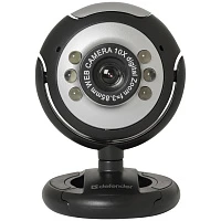 Веб-камера Defender C-110, 0.3 МП, 640х480, подсветка, микрофон, кнопка фото, серый, черный
