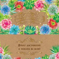 Dream Cards Конверт С днем рождения (кактусы, крафт+тиснение) КТ-0025