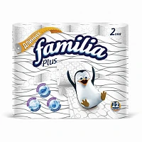 Бумага туалетная бытовая, спайка 12 шт., 2-слойная (12х18 м), FAMILIA PLUS, белая, 5057792