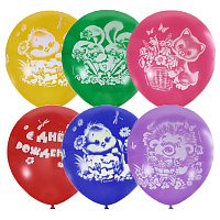 12"/30см Пастель+Декоратор (шелк) 1 ст. рис С Днем Рождения 5шт