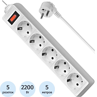 Сетевой фильтр Defender ES 5, на 5 розеток, 5 метров, белый (99483)