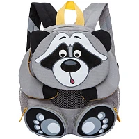 Рюкзак детский Grizzly "Енот", 24*29*14см, 1 отделение, 5 карманов, уплотненная спинка, серый/черный