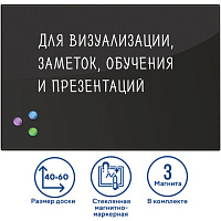 Доска магнитно-маркерная стеклянная 60х90 см, 3 магнита, ЧЕРНАЯ, BRAUBERG, 236748