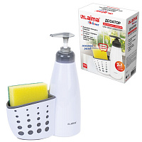 Дозатор для моющего средства, органайзер кухонный + губка, БЕЛЫЙ, 8х20х16 см, LAIMA HOME, 700048
