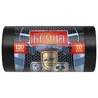 Мешки для мусора 120 л, ПРОЧНЫЕ черные, в рулоне 10 шт., ПВД 60 мкм, 2-х слойные, 70x110 см, "БРОНЯ", ВР-0010