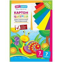 Картон цветной двусторонний A4, ArtSpace, 7л., 7цв., мелованный, в папке