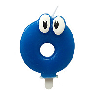 Свеча Цифра 0 Синяя С глазками 6,5см