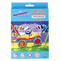 Карандаши цветные ЮНЛАНДИЯ "ЮНЛАНДИК БЫСТРЕЕ ВСЕХ", 36 цветов, трехгранные заточенные, 181391
