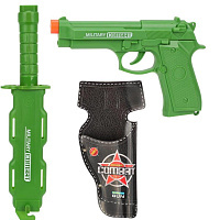 Игр.набор Военный, пистолет эл., звук, кобура, кинжал, чехол, эл.пит.AG13*3шт.не вх.в комплект, паке