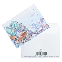 Конверт почтовый "Новогодний" кормушка, снегири, новогодние игрушки