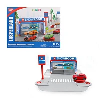 Автомобильный магазин, в комплекте: деталей 29шт., машина инерц.металл. 1шт., коробка