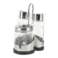 Набор для специй солонка/ перечница на подставке 10,5*5,5*10см. (стекло, металл) (подарочная упаковка)