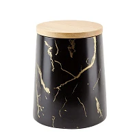Банка для сыпучих продуктов (с бамбуковой крышкой) "Черный мрамор" d=10см. h=10,5см. v=520мл. (подарочная упаковка)