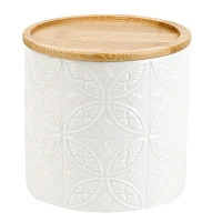 Банка для сыпучих продуктов (с бамбуковой крышкой) "Белый мрамор" d=10,5см. h=14см. v=720мл. (подарочная упаковка)