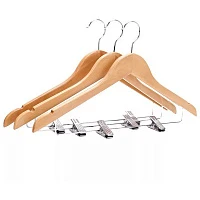 Вешалка-плечики OfficeClean, набор 3 шт., деревянная, металлическая перекладина, клипсы для брюк, 45 см, цвет сосна