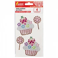 Наклейки готовые из страз ПИРОЖЕНКИ, 4 декоративных элемента, 9,5х15,5 см, ОСТРОВ СОКРОВИЩ, 661563