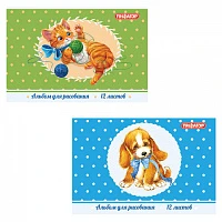 Альбом для рисования, А4, 12 л., скоба, обложка офсет, ПИФАГОР, 200х285 мм, "Любимцы" (2 вида), 104856