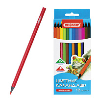 Карандаши цветные ПИФАГОР СТАНДАРТ 12 цветов, трехгранный корпус, 182087