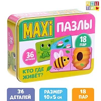 Макси-пазлы в металлической коробке «Кто где живёт?», парные, 36 деталей