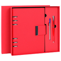 Ежедневник на кольцах в наборе с ручкой А5, 165x229 мм, BRAUBERG "Lux", под кожу, 100 листов, красный, 116857