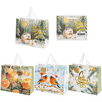 Пакет подарочный (1 шт.) новогодний 26х13х32 см "Winter Wonderland", фольга, ассорти, ЗОЛОТАЯ СКАЗКА, 592443