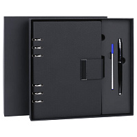 Ежедневник на кольцах в наборе с ручкой А5, 165x229 мм, BRAUBERG "Lux", под кожу, 100 листов, черный, 116856