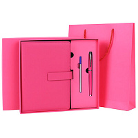 Ежедневник в подарочном наборе 5 в 1, А5, 145x212 мм, BRAUBERG "President", под кожу, 160 листов, розовый, 116852