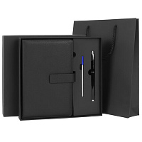 Ежедневник в подарочном наборе 5 в 1, А5, 145x212 мм, BRAUBERG "President", под кожу, 160 листов, черный, 116850