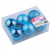 Шары елочные ЗОЛОТАЯ СКАЗКА, НАБОР 6 штук, пластик, 6 см, БИРЮЗОВЫЕ (глянец, матовый, глиттер), 590871