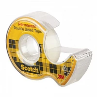 Клейкая лента двухсторонняя 12 мм х 6,3 м канцелярская, в диспенсере, 89 мкм, SCOTCH, 136D
