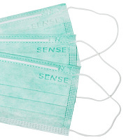 Маски медицинские SENSE одноразовые КОМПЛЕКТ 50 штук короб, 3-х слойные, мельтблаун, мятная