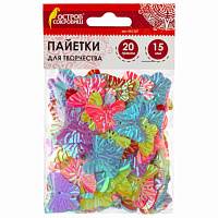 Пайетки для творчества "Бабочки", яркие, цвет ассорти, 5 цветов, 15 мм, 20 грамм, ОСТРОВ СОКРОВИЩ, 661281
