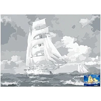 Холст на картоне с контуром Сонет "Парусник в море", 30*40см