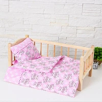 Постельное бельё для кукол «Cовушки и звёзды на розовом», простынь, одеяло, подушка