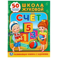 Книжка-задание Умка А4 "Школа Жуковой. Счет", 16стр., 50 многораз. наклеек, глянц. ламин.