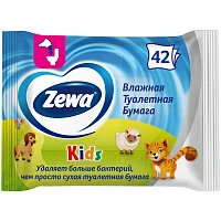 Бумага туалетная влажная Zewa "Kids", 42шт./пач., без спирта, цефленовый пакет. 8022