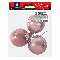 Шары елочные с узором ЗОЛОТАЯ СКАЗКА, НАБОР 3 шт., пластик, 6 см, цвет "РОЗОВОЕ ВИНО", глянец, 591111