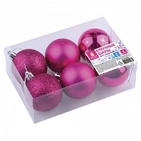 Шары елочные ЗОЛОТАЯ СКАЗКА, НАБОР 6 штук, пластик, 8 см, ФУКСИЯ (глянец, матовый, глиттер), 590878