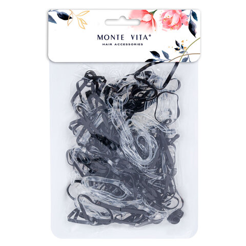 Резинки для волос НАБОР 250 шт., силиконовые, большие, чёрный, прозрачный, MONTE VITA (МОНТЕ ВИТА), 457066