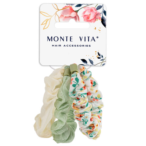 Резинки для волос MONTE VITA – идеальное решение для создания прически. Резинки помогают поддерживать волосы в аккуратном состоянии, придают прическе законченный вид. 3 скранч-резинки с веселыми принтами – взрыв цвета для летних образов. Яркие оттенки сочетаются с джинсами, платьями и спортивной одеждой, а плотная фиксация удерживает даже непослушные пряди.Резинки обеспечивают надежную фиксацию, удобно снимаются, не цепляют и не рвут волосы.