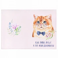 Обложка на паспорт из натуральной кожи "Кот джентельмен" ОП-8269