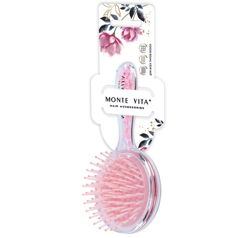 Расческа для волос массажная 15х7 см, с блестками прозрачный/розовый, MONTE VITA (МОНТЕ ВИТА), 457424