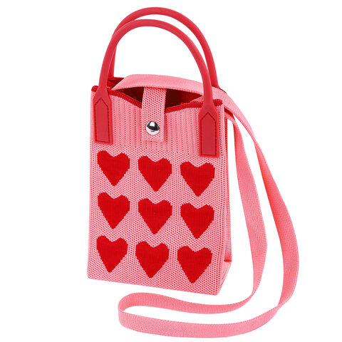 Сумочка-органайзер HEIKKI KNIT "Hearts" - стильная и компактная сумка кросс-боди для повседневного использования. Отлично подходит для хранения мелочей, которые всегда должны быть под рукой. Сумочка-органайзер изготовлена из износостойких прочных нитей из полиэстера, плотное плетение обеспечивает долгий срок службы изделия. Размер сумочки 17х12 см, компактная, но вместительная. Глубина сумки - 5 см, но благодаря тянущемуся материалу она может расширяться в 2 раза - до 10 см. В нее поместится телефон, кошелек, паспорт, ключи, а также ряд других мелочей, которые всегда должны быть под рукой. У сумочки-органайзера два варианта ручек - 1 удлиненная плетеная ручка размером 120 см позволяет носить ее через плечо. Кроме того, сумочка оснащена 2 нескользящими силиконовыми ручками, с помощью которых ее комфортно держать в руке, размер каждой ручки - 28 см. Металлическая застежка-кнопка, расположенная в верхней части сумки, сохранит все предметы в безопасности.Упакована в прозрачный полиэтиленовый пакет, который сохранит качество и товарный вид изделия при хранении и транспортировке.