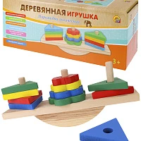 Деревянная игрушка. Пирамидка "Формы и баланс" 21х9х5,5см (в коробке) (Арт. ИД-1047)