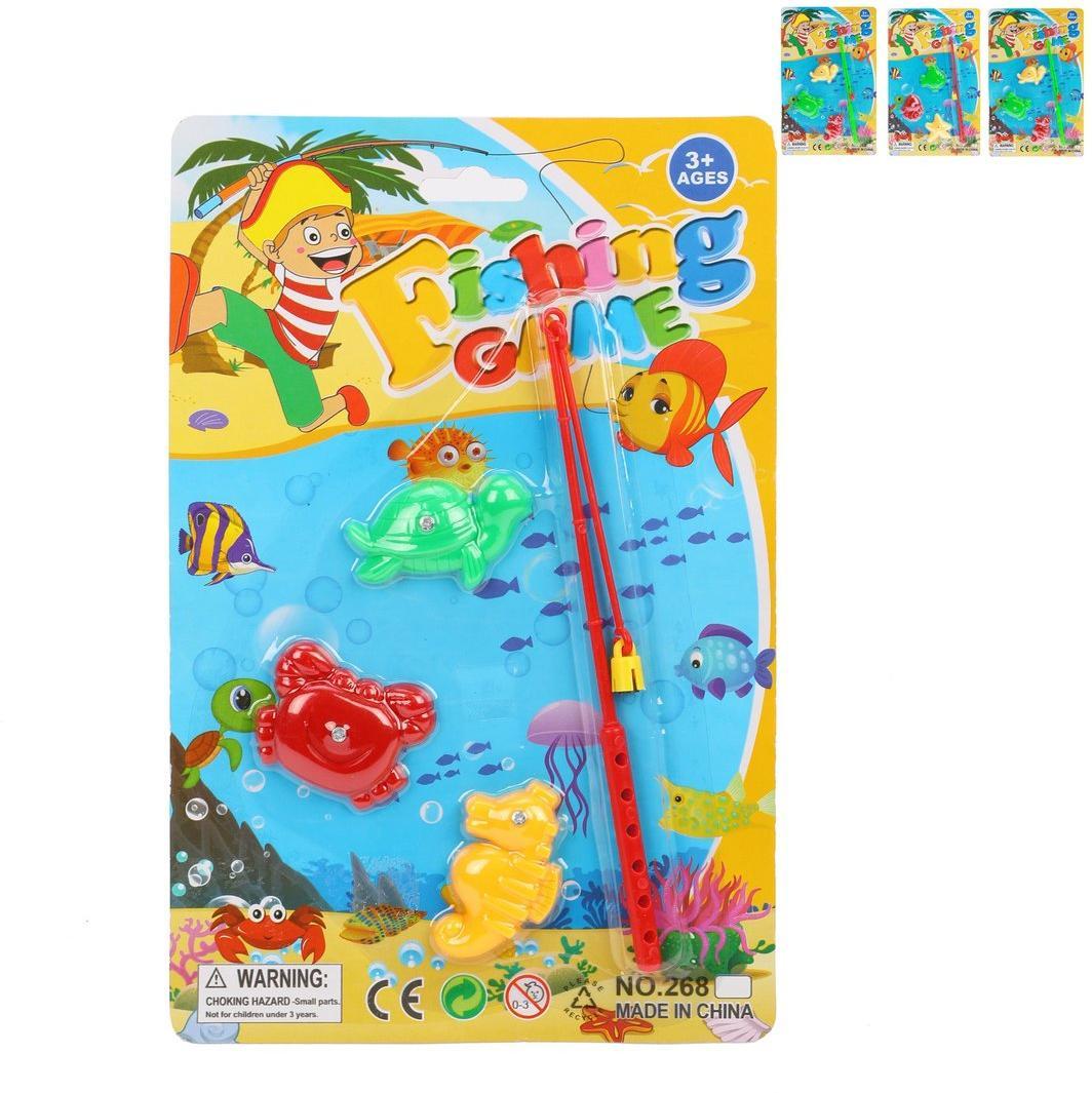 Набор Рыбалка магнитная, в комплекте 3 фигурки, 1 удочка, в ассортименте, блистер