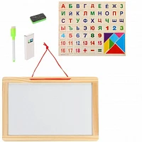 Доска деревянная (магнитная+меловая) магниты Алфавит+цифры+пазлы. 151